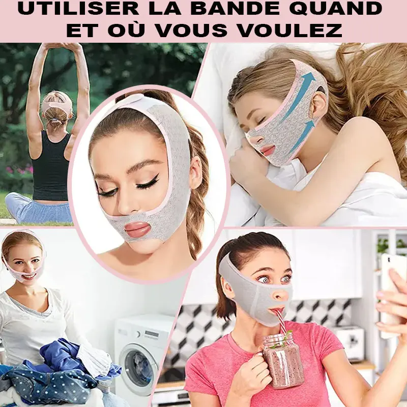 L'utilisation régulière de notre bande peut contribuer à améliorer l'apparence générale de votre visage et de votre zone du menton.
